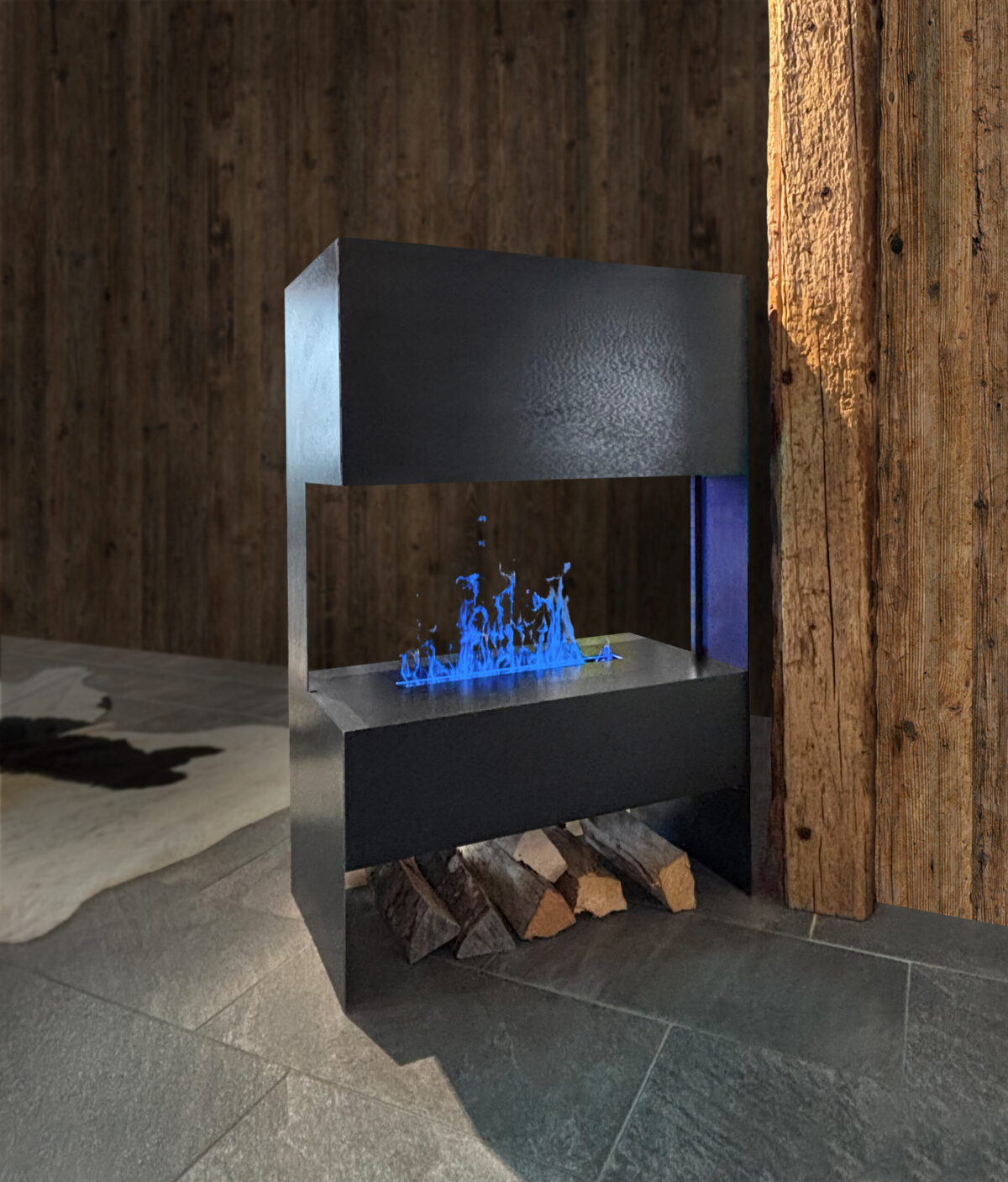 Ideal für Wohnräume, Showrooms oder Gastronomie schafft es eine behagliche Kaminatmosphäre – unabhängig von Jahreszeit oder baulichen Voraussetzungen. Ein Feuer, das nicht wärmt, sondern begeistert.