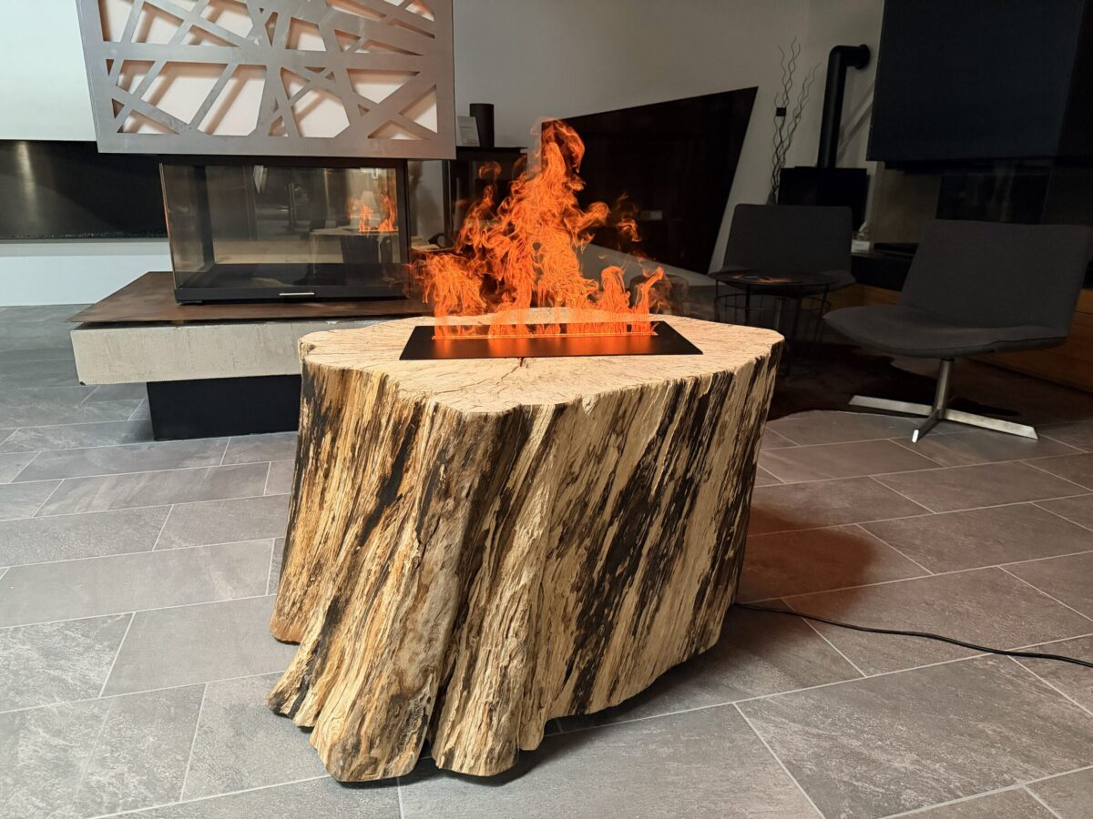 Dieses außergewöhnliche Effektfeuer vereint modernste Feuertechnik mit der ursprünglichen Kraft der Natur. Eingebettet in einen echten, massiven Holzstamm wird jedes Stück zu einem unverwechselbaren Unikat – geformt von der Natur, veredelt durch Design.