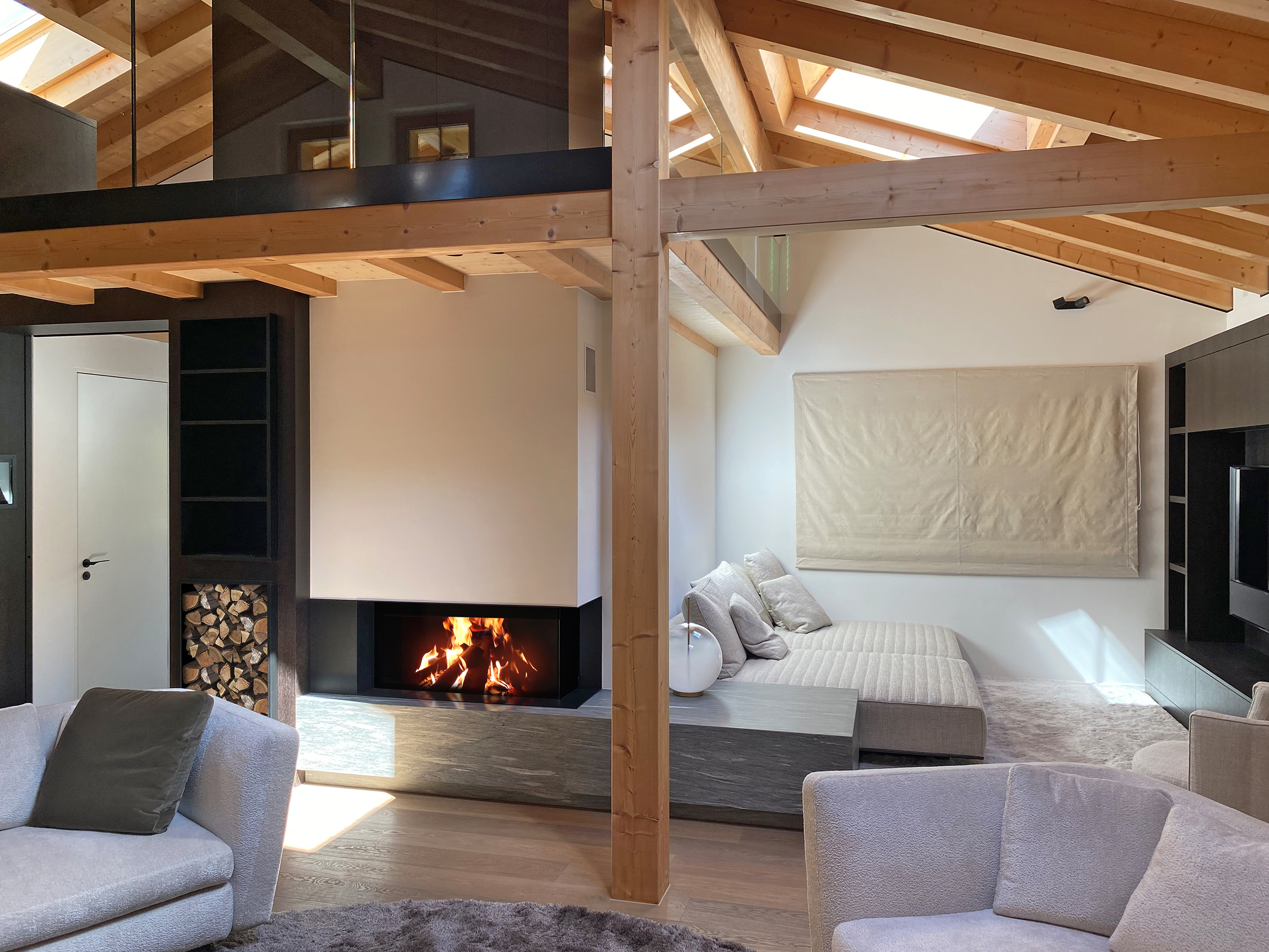 Das etwas grössere Modell Luna Diamond 1100 CL\CR (Ecke Links\Ecke Rechts) besitzt, wie das kleinere Modell Luna Diamond 1100 CL\CR (Ecke Links\Ecke Rechts), eine durchgehend gebogene Sichtscheibe, wodurch der Blick auf das Feuer nicht gestört wird. Die grosse Scheibe hat die Abmessung von 1111x11x555 mm und ist durch herausziehen leicht zu Reinigen.