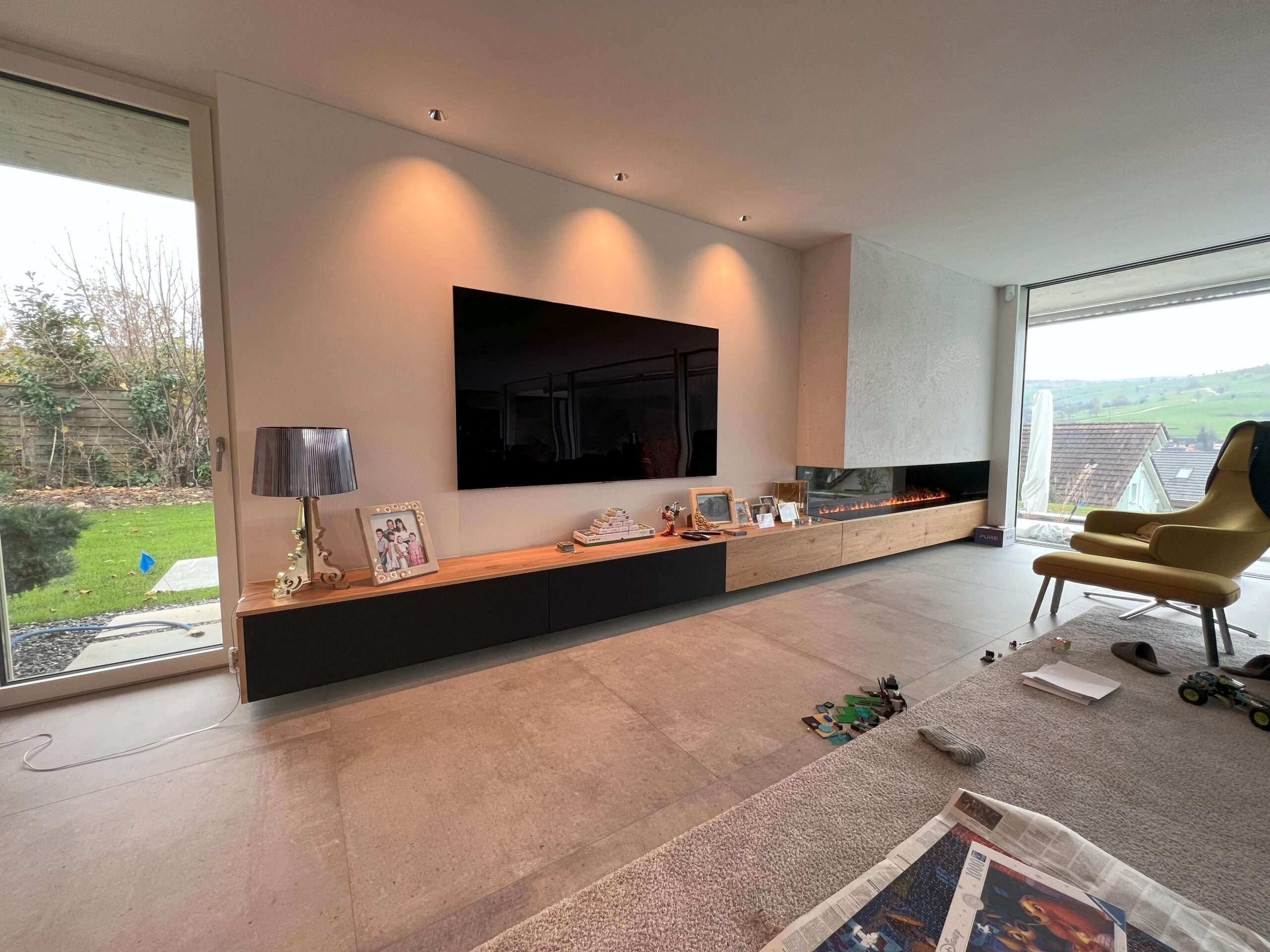 Das durchgehende Flammbild gibt es fix in 450mm-Schritten, die Kastengrösse grundsätzlich in 500mm-Schritten, kann aber auch individuell Ihren Bedürfnissen angepasst werden.